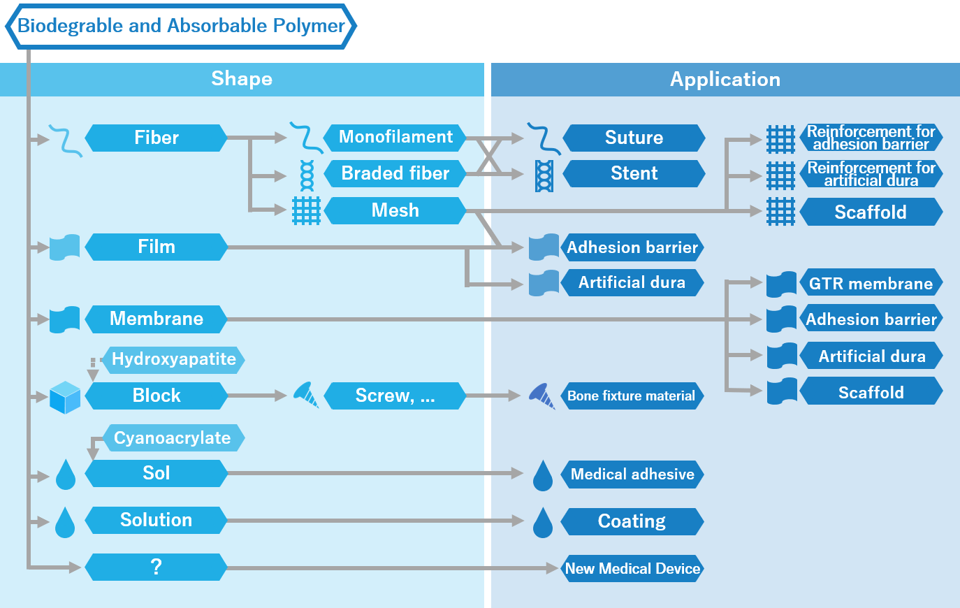 In order to improve patients’ QOL (quality of life), “BioDegmer” is the ideal innovative solutions by its excellent bio-compatibility, bio-absorbability and flexible processing property.