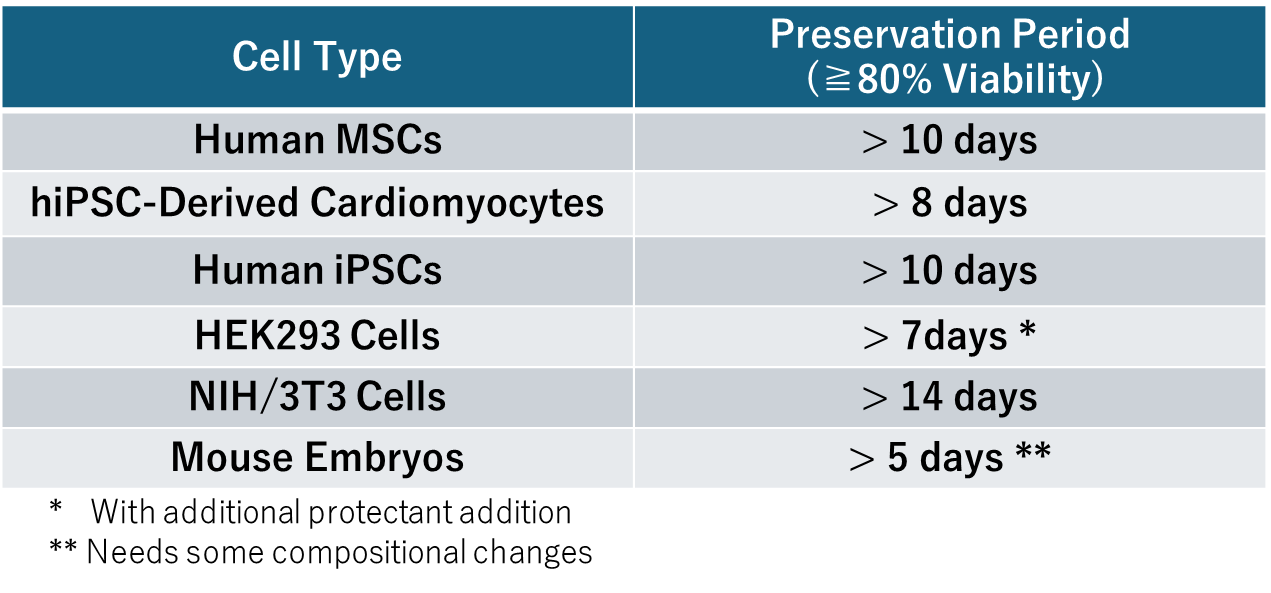 It can be used simply by replacing the culture medium, allowing preservation without the need for freezing while minimizing cellular damage.