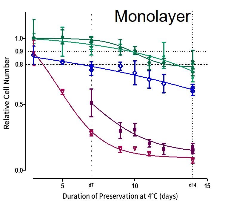 培地置換のみで使用可能で、凍結を必要とせず、細胞へのダメージを抑えながら保存が可能です。